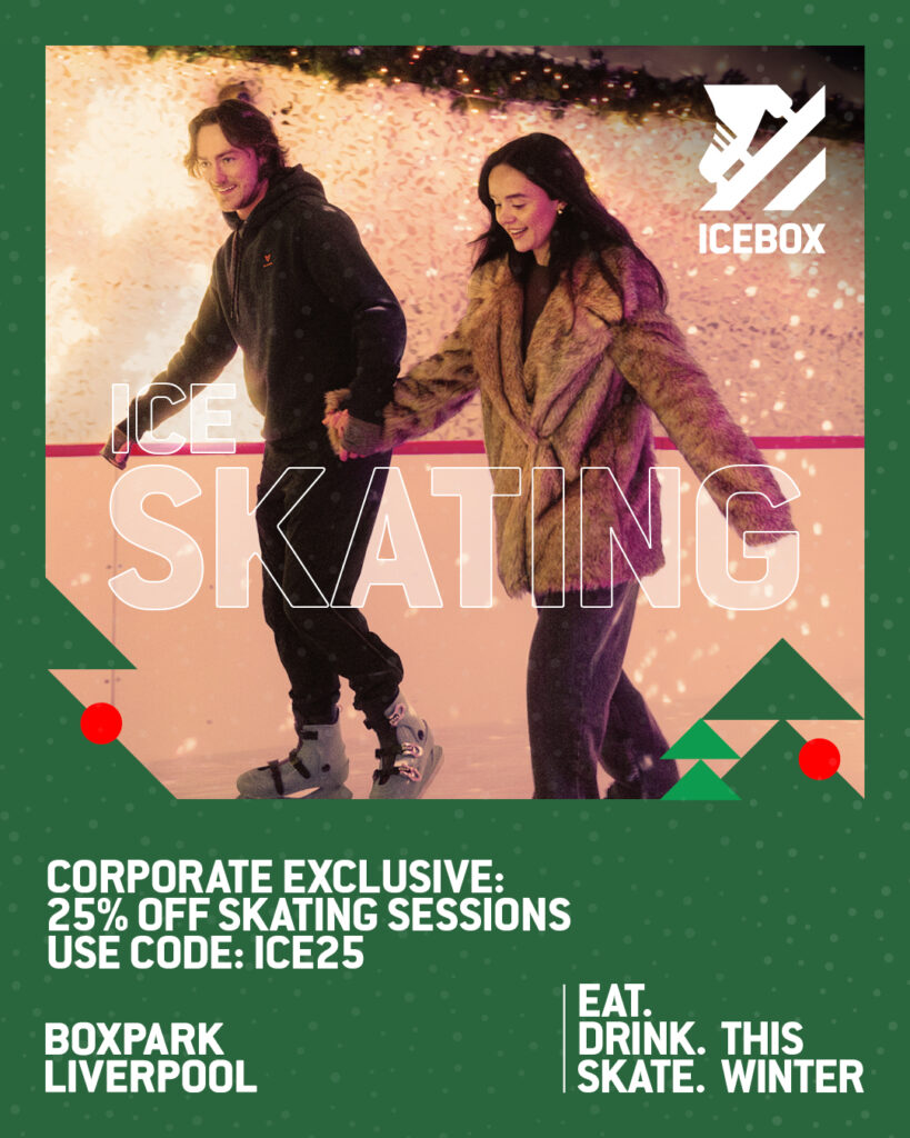 BOXPARK Liverpool have shared an exclusive discount code just for all of their wonderful friends and neighbours! This code entitles you to 25% off per skating ticket to their famous ICEBOX. Book your place HERE Merry Christmas from BOXPARK!